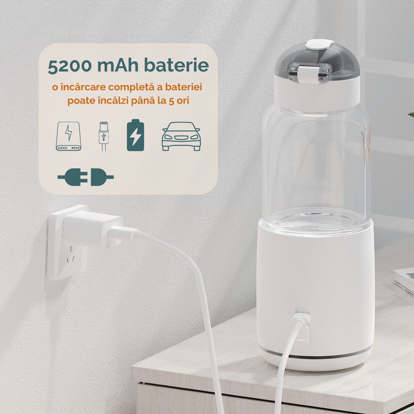 Încălzitor biberon cu baterie încorporată, fără fir, ce poate încălzi până la 5 biberoane de 300 ml dintr-o singura încărcare